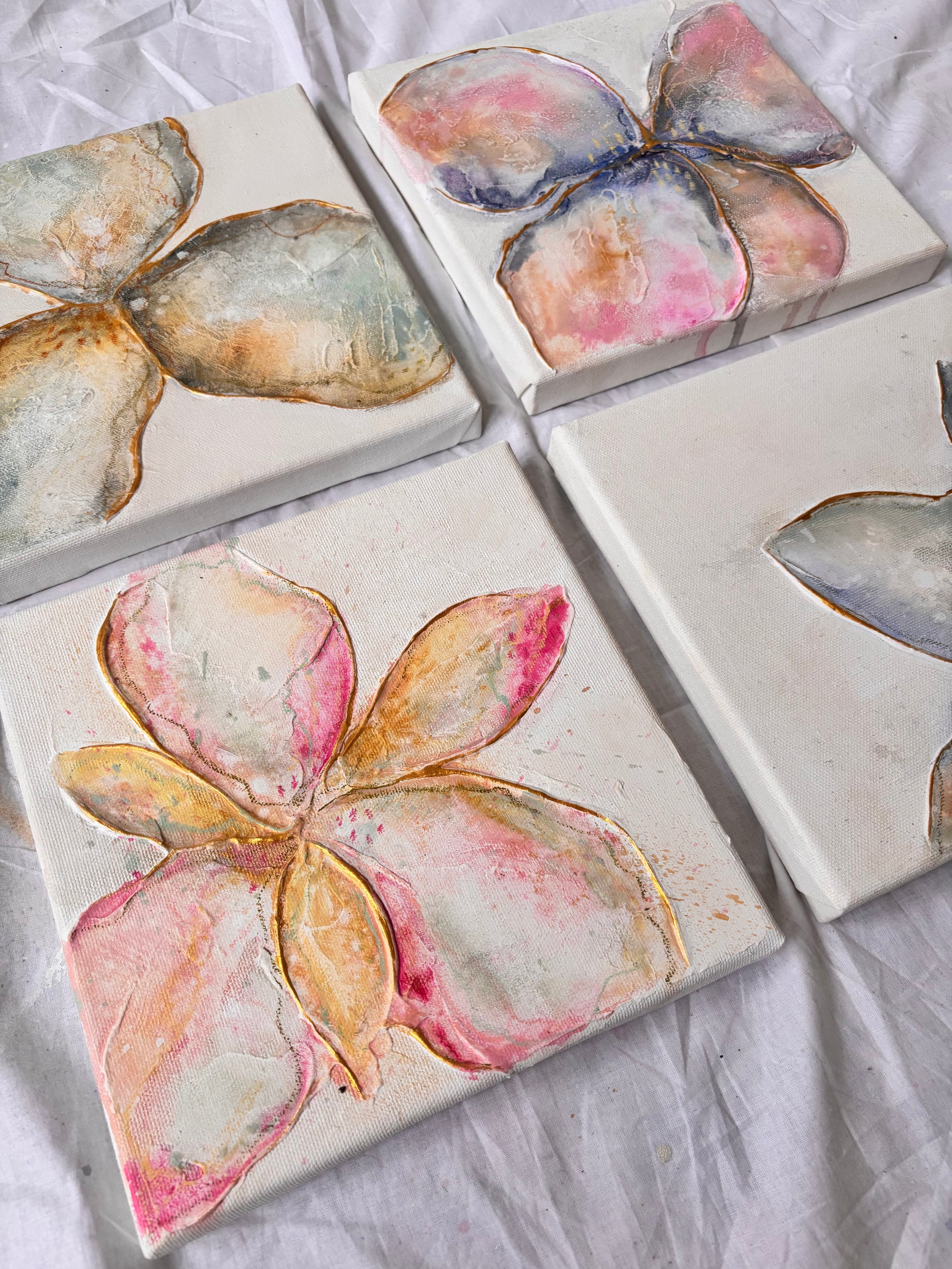 Kasvu is an abstract floral piece where colours and forms reflect vitality and slow, natural development. The artwork highlights the subtle sensitivity present in the process of growth.